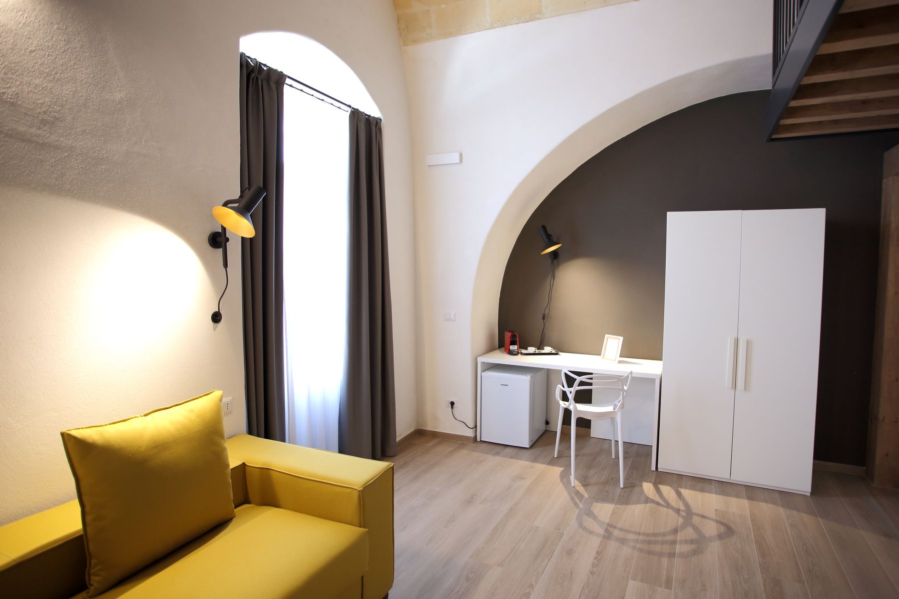 Questa camera si ispira alla masciara, una donna simile ad una strega a cui la tradizione folkloristica meridionale attribuisce poteri magici. È una doppia intima e confortevole e dispone di 1 letto matrimoniale con un bagno dotato di un’ampia doccia.